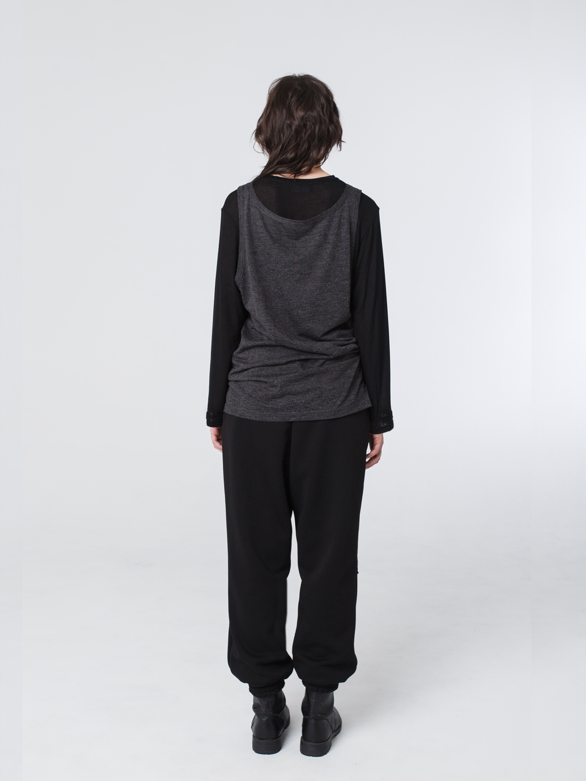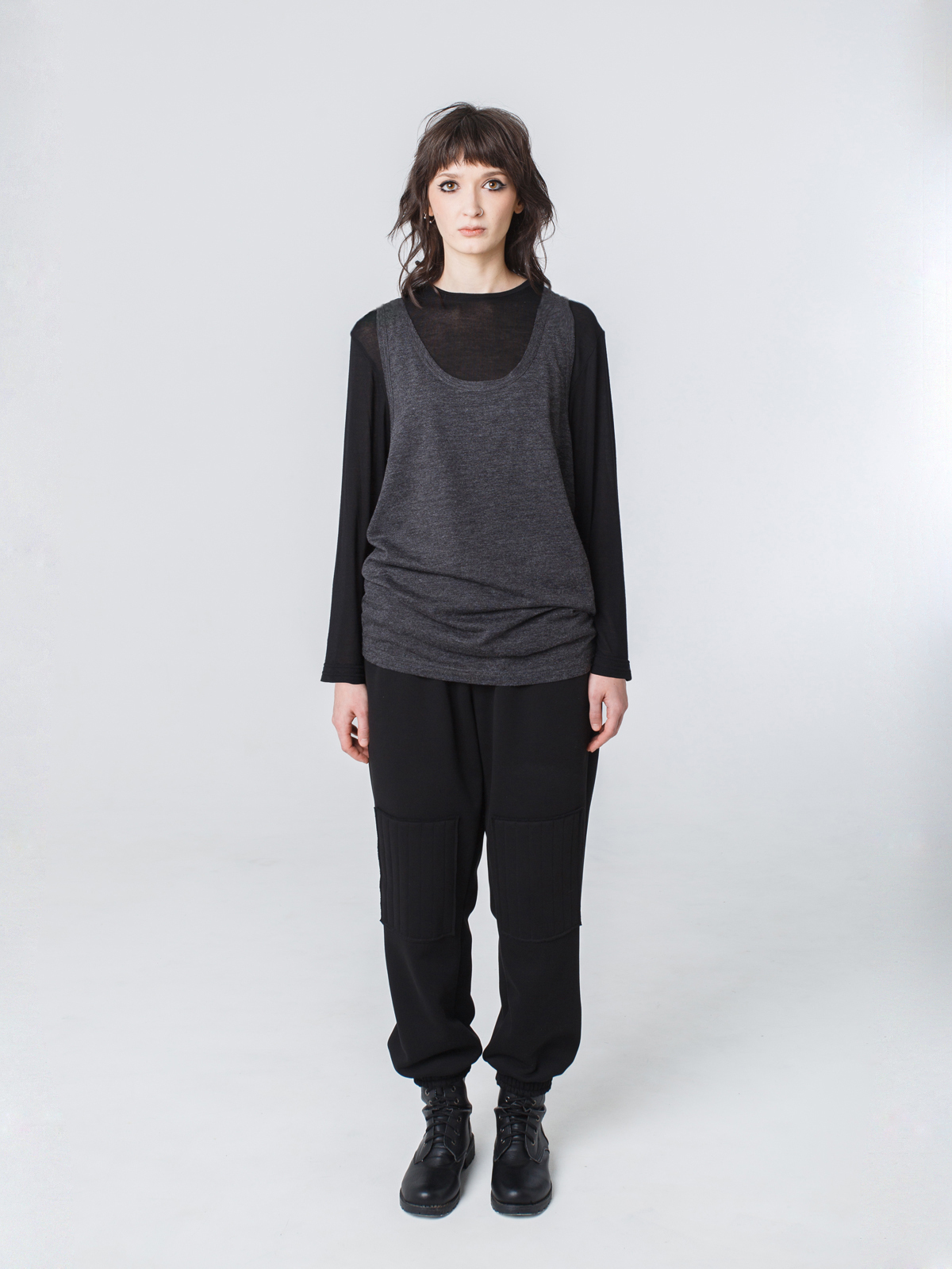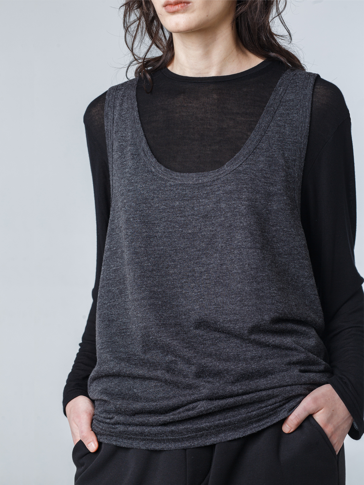 Майка унисекс с круглым вырезом прямого силуэта из тонкого меланжевого трикотажа. Полотно тонкой вязки из тенсела и вискозы приятно к телу и комфортно в любую погоду.