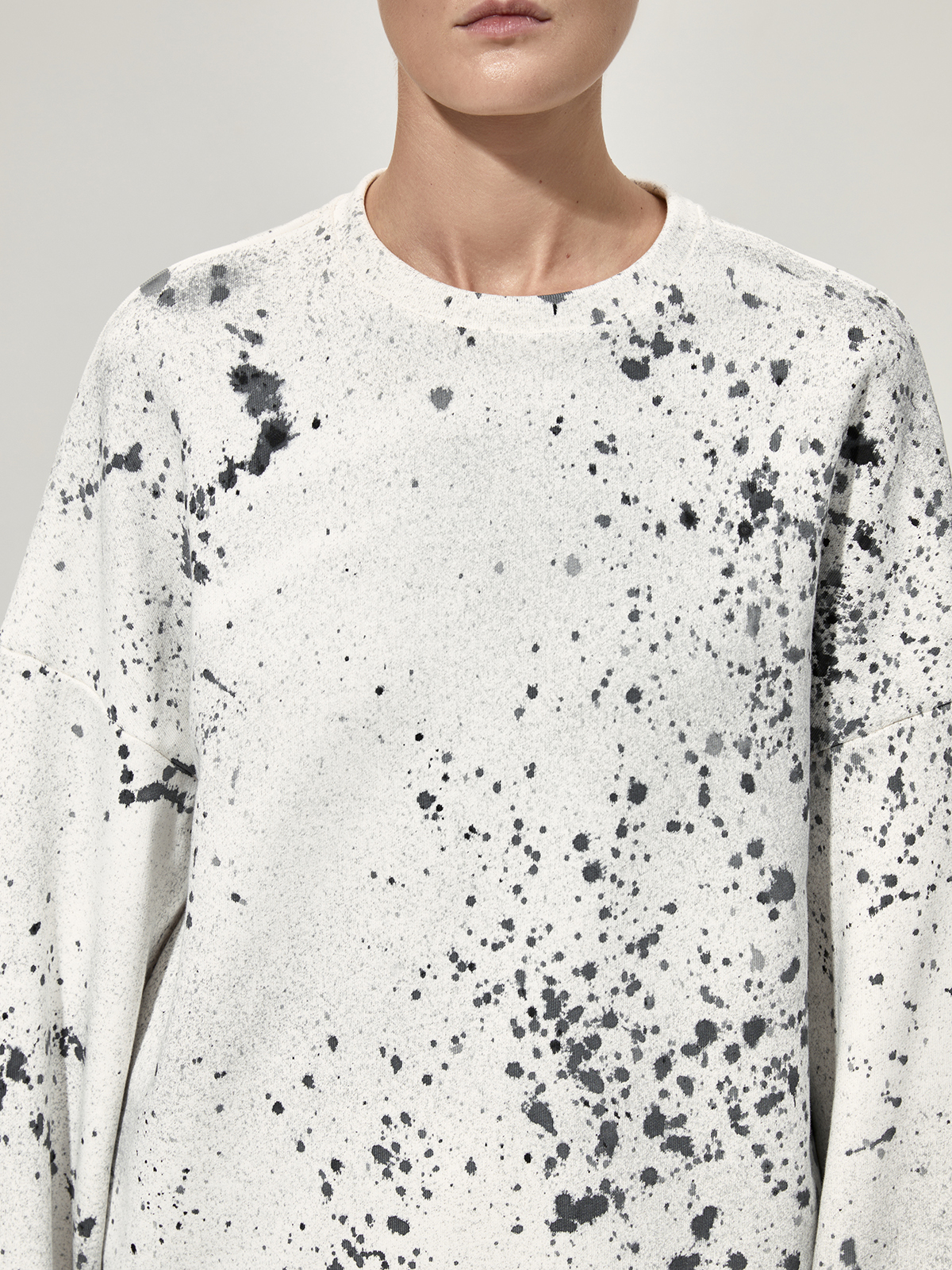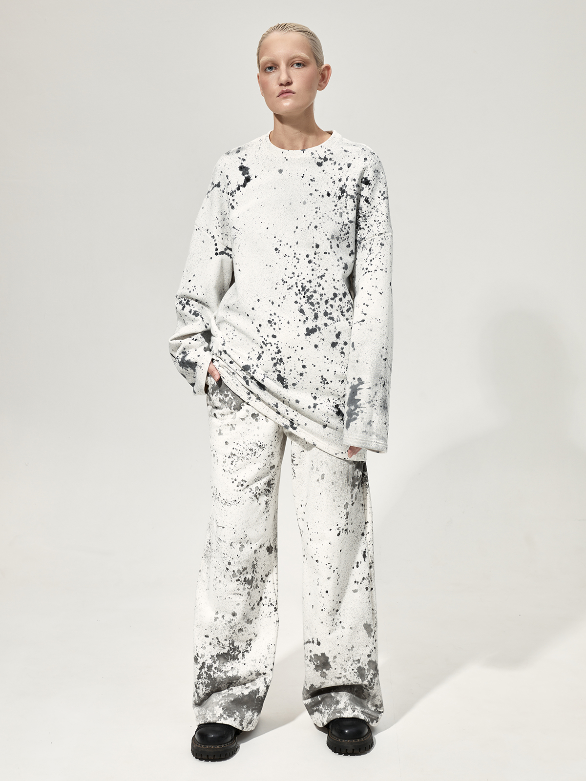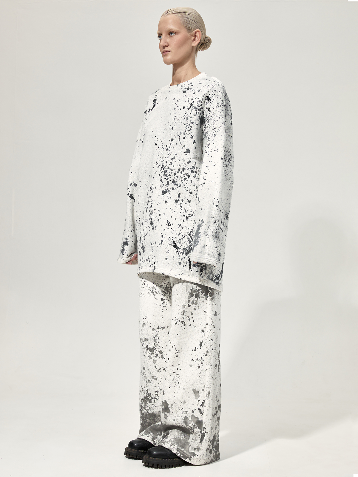 Толстовка силуэта оверсайз со смещёнными боковыми швами из плотного 100% хлопкового футера. Каждое изделие окрашено вручную в технике капельной живописи и имеет оригинальный рисунок.