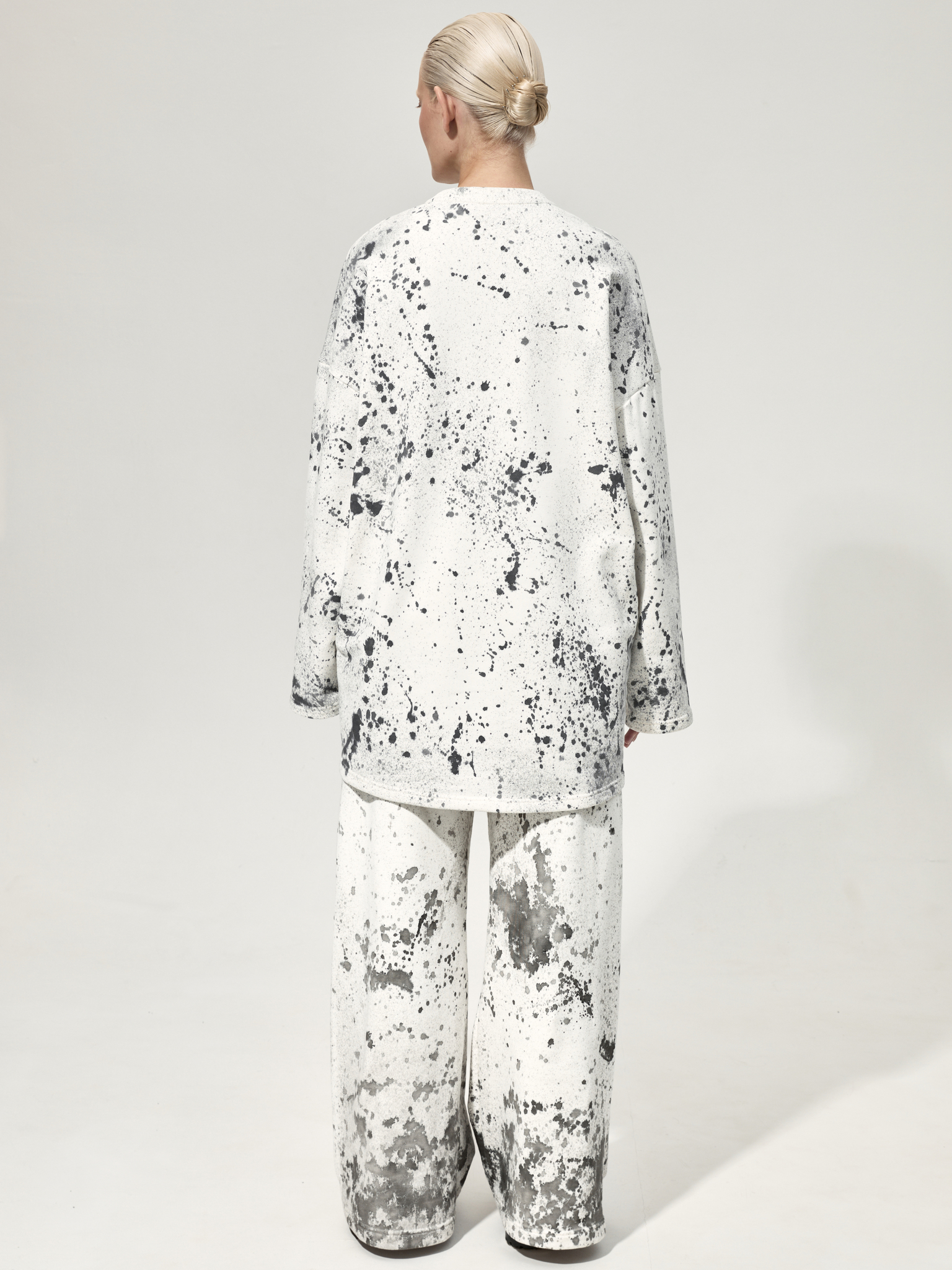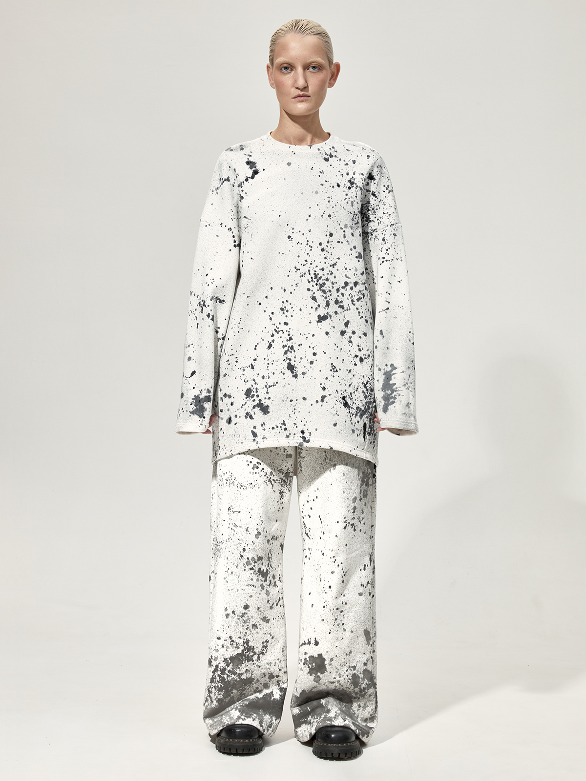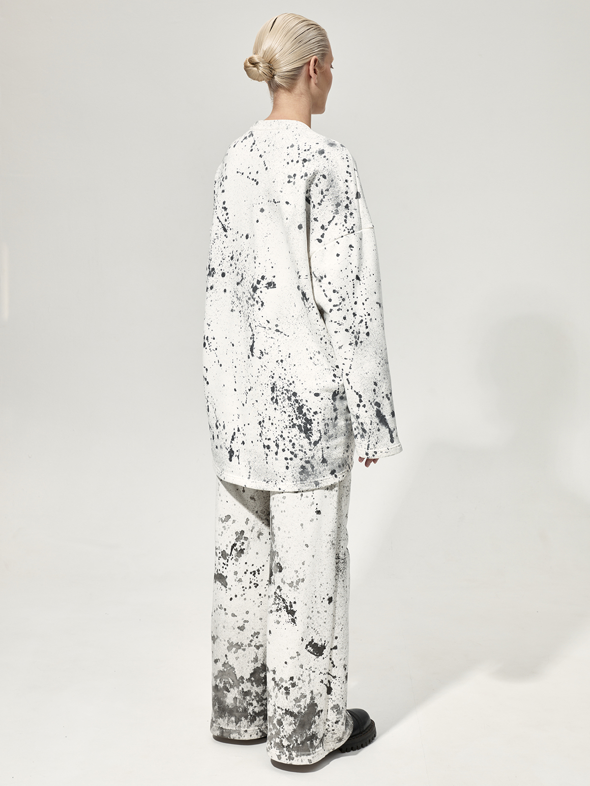Толстовка силуэта оверсайз со смещёнными боковыми швами из плотного 100% хлопкового футера. Каждое изделие окрашено вручную в технике капельной живописи и имеет оригинальный рисунок.